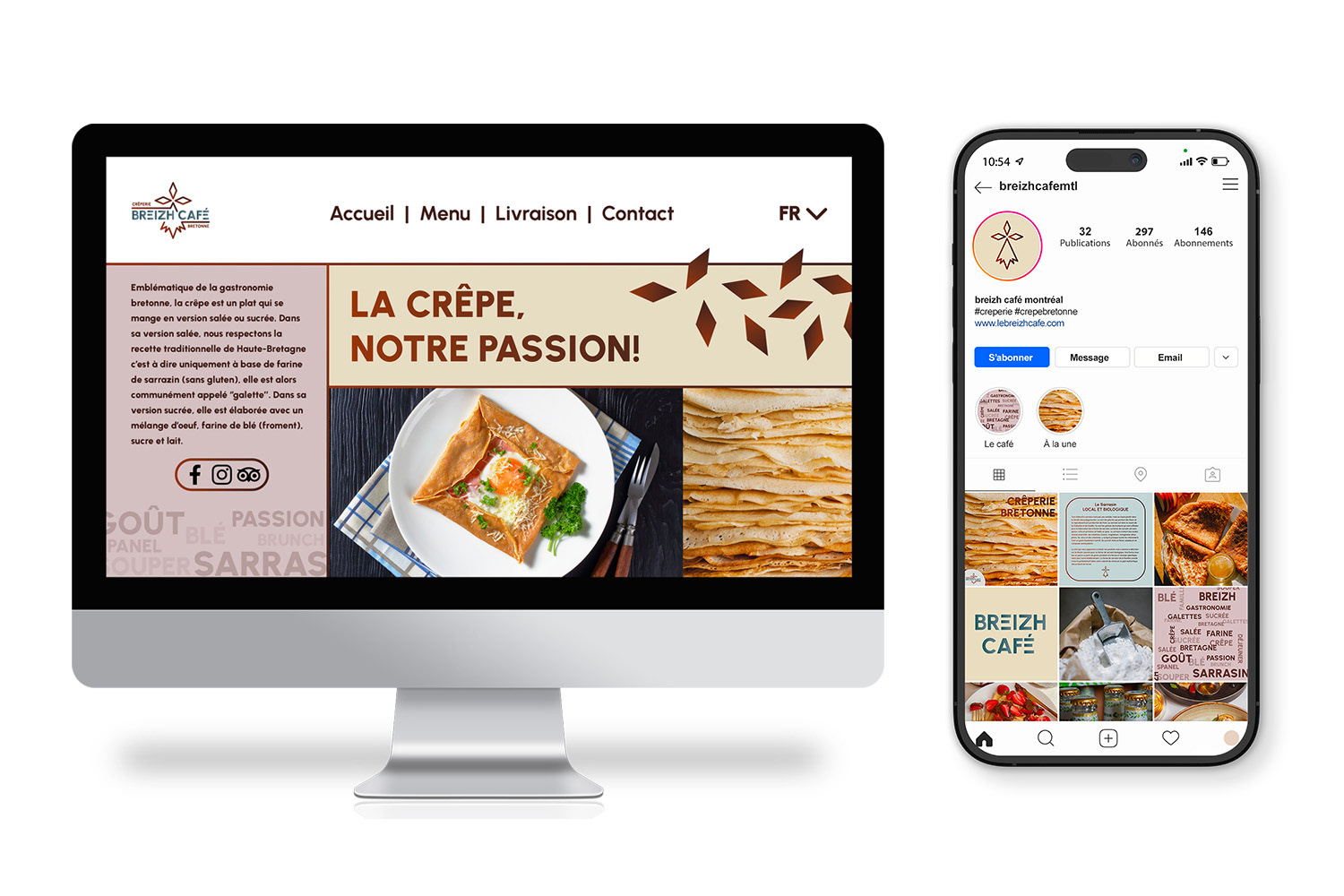 Nouvelle image de marque pour la crêperie Breizh Café conçue dans un cadre professionnel. Ce projet a impliqué la création d’une nouvelle identité visuelle pour l’entreprise, suivi de déclinaisons. Le client souhaitait avoir une identité visuelle plus moderne pour sa crêperie bretonne et se différencier des autres crêperies à Montréal.